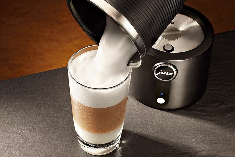 Aparatul pentru spuma de lapte este un dizpozitiv simplu, rapid si potrivit pentru prepararea unei spume perfecte de lapte de o consistenta fina si cremoasa pentru toate specialitatile reci ca Latte frio, ciocolata rece dar si pentru alte bauturi in tendinte. Creat in stilul clasic de la JURA, Milk Frother-ul este un accesoriu perfect pentru orice aparat de cafea si o necesitate pentru toti iubitorii de specialitati in tendinte. Usor de utilizat, gratie butonului sau unic, acesta poate prepara intr-o clipa spuma de lapte rece, calda sau fierbinte.