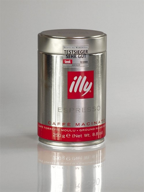 Illy la 250g , folosita pentru consumul acasa, este expresia perfecta a pasiunii pentru frumos si calitate. Cutia din metal argintie, eleganta, permite protejarea si pastrarea nealterata a amestecului de cafea. Datorita sistemului inventat si patentat, Illy extrage aerul din ambalaj, inlocuindu-l cu un gaz inert, presurizat. Aceasta metoda garanteaza un timp foarte mare de conservare, asigurand prospetimea cafelei pentru cel putin 25 de luni. Acest tip de cafea Illy macinata 250g cu cofeina, cafea rasnita fin potrivita pentru espresso si alte preparate are un continut de cofeina de sub 1.5%.