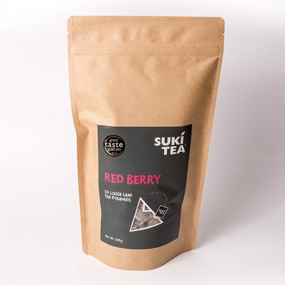 Suki Red Berry inseamna un mix de fructe de padure rosii, iti ofera energie si are doar ingrediente naturale. O adevarata explozie de fructe intr-o ceasca cu ceai.